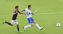 On June 12, 2014 New York City FC, who did not begin play until the 2015 MLS season, traded a second-round 2016 MLS SuperDraft pick to Montreal for Brovsky, making him their second signing.[5][6] Four weeks later, the New York club sent him on loan to Strømsgodset in Norway, an affiliate of NYCFC's sister club Manchester City, in order to keep him match fit for the start of the 2015 Major League Soccer season.[7] On July 26, he got his Tippeligaen debut, when he came on as a substitute in the 76th minute in the match against Sandnes Ulf.[8]