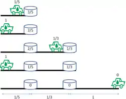 units on its final trip.[1][3] It collects all of the remaining fuel at each dump on the way out, which fills its tank. After leaving the farthest fuel dump it travels a further distance of 1 unit.