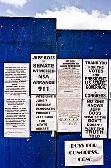 In 2014, Boss ran for the U.S. Senate in New Jersey as an independent.[11] His slogans were "NSA Whistleblower" and "NSA Did 911".[11] He received 4,513 votes[12] (0.24% of the vote)
