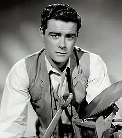 Richards had his first sizeable role, billed third as a ball player, in Big Leaguer (1954).[7] Seagulls Over Sorrento (1954) was another decent sized role. Then Richards was the third lead in Seven Brides for Seven Brothers (1954), after Howard Keel and Jane Powell. It was a big hit and established him as a film name. MGM started to build him up as a star.[8] Dore Schary, head of the studio, said the actor had "tremendous personal charm" and "looks like a great bet [to become a star], based on his reception til now."[9]