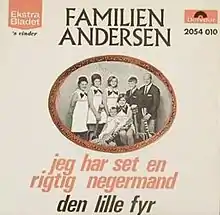 In 1970, the Andersen Family won the "best Danish band" competition sponsored by the newspaper Ekstra Bladet.[1] As a result, the family won a recording contract with Polydor Records, and released "Jeg har set en rigtig negermand" as its first single.[1] At the same time, the family was performing under contract at Tivoli Gardens, increasing the family's popularity, especially that of "Little Bo", the 4-year-old lead singer who would go on to achieve fame as a child actor.[1]