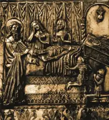 Tvrtko was about 15 years old when he became Ban of Bosnia upon the death of her brother-in-law in the fall of 1353. Jelena and Vladislav, who was excluded from succession for unknown reasons, assumed government in the name of the young Ban. Widowed within a year, Jelena continued ruling on Tvrtko's behalf alone.[2] Accompanied by her younger son, Jelena immediately traveled to the court of their overlord, King Louis I of Hungary, to seek his consent to Tvrtko's accession. Louis tasked her with delivering a message to her sister-in-law Jelena Nemanjić, widow of her brother Mladen III, who was trying to keep hold of the Kliss Fortress. Upon her return to Bosnia, Jelena presided over an assembly (stanak) in Mile and confirmed the possessions and privileges of the noblemen of "all of Bosnia, Donji Kraji, Zagorje and the Hum land".[3] In May 1355 she decided to take an active part in the dispute over the Šubić family inheritance, which had been ongoing since the death of her brother Mladen in 1348. Jelena marched with Tvrtko and their army to Duvno. An agreement was concluded by which her son was to inherit all cities held by her father and a city held by her sister Katarina.[4]