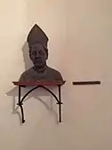During the reconstruction of Jan of Jenštejn, a private chapel was built on the second floor of the round tower. The circular ground plan of the chapel is vaulted with a ribbed vault with a small smooth bolt in the middle. There is also a small pentagonal presbytery vaulted with a ribbed vault and the same smooth bolt. The presbytery is illuminated by a narrow window with Gothic arch. There is a stone altar with an archbishop's personal coat of arms under the triumphal arch, which has simple geometrically indicated column base on the side of the presbytery. The bust of Archbishop Jan of Jenštejn (the most important owner of the castle) was added after the modern reconstruction into the chapel space. The bust is a replica of the triforium in St. Vitus Cathedral.[5] In the lower part of the tower are cellars, which probably served as pantry and chambers. There are two more floors above the chapel, the first floor can be entered by a narrow spiral staircase. There is usually a small exhibition. Above this floor is unsheltered floor, accessible from ladder used as view point.