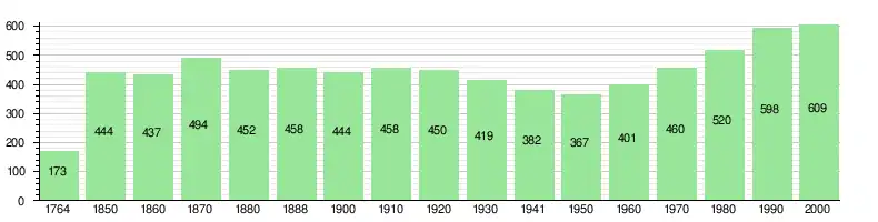 Jens has a population (as of December 2020) of 633.[8] As of 2010, 3.0% of the population are resident foreign nationals. Over the last 10 years (2001-2011) the population has changed at a rate of -1.2%. Migration accounted for -0.6%, while births and deaths accounted for 0.3%.[9]