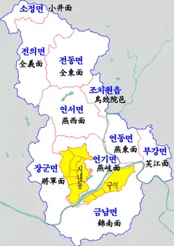 Jeonui-myeon (Korean: 전의면; Hanja: 全義面) is a township of Sejong City, South Korea.