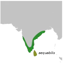 Thomas C. Jerdon first described this species in an annotation to his 1845 treatment of the jungle nightjar (C. indicus) in the Illustrations of Indian ornithology.[4] Subsequently, it was sometimes lumped again with C. macrurus, but the co-occurrence of this form and large-tailed nightjar C. macrurus without interbreeding in the northeast of the Indian peninsula was noted in 1987 suggesting their distinctness. It has since been reaffirmed as a full species based on studies on vocalization.[5] The subspecies in Sri Lanka is C. a. aequabilis.[6] Jerdon's type locality mentioned as Ghauts has been considered to be the Eastern Ghats west of Nellore.[7][8][9]