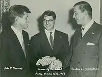In the early 1950s Rappaport quickly emerged as one of Boston's most well-known political leaders.[10] The peak occurred when Rappaport succeeded Congressman John F. Kennedy in receiving the Massachusetts Jaycees "Distinguished Service" award as Massachusetts' most Outstanding Young Leader for 1952.[11] Kennedy's award was one of many steppingstones on the road to his becoming a United States Senator. Rappaport's acceptance speech in January 1953 was mostly geared towards inspiring wealthier and more seasoned local businessmen to invest everything they could in Boston's then-languishing economic development program, and "to give more time, energy, and thought to community affairs."[12]