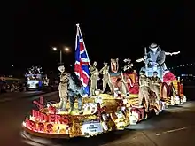 The Jersey Battle of Flowers is an annual carnival held in the Channel Island of Jersey on the second Thursday of August. The festival consists of music, funfairs, dancers, majorettes and a parade of flower floats alongside various street entertainers. It was inaugurated in 1902 to celebrate the coronation of King Edward VII and Queen Alexandra. The largest attendance to date is thought to be that of 1969 when 60,000 people were present.[1] Current spectator numbers are around 20,000.