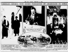 In a letter sent to Morgenthau on August 19, Jackson stated that the deportations were of all Armenians regardless of their religious affiliation (i.e., Catholicism or Protestantism).[18] He noted that nine trains passed through Aleppo between 1 and 19 August, several of which were carrying thousands of Armenians from Ainteb who were subsequently robbed by villagers.[19] Jackson described these "wartime anti-Armenian measures" as a "gigantic plundering scheme as well as a final blow to extinguish the race."[20][21][22]
