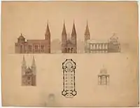 The church's designer, Vilhelm Dahlerup, certainly the leading Danish architect of the period, is remembered for his historistic style whereby he created new buildings on the basis of older, classical examples.[2] There were, however, rather precise instructions on how the Jesus Church should be designed. In particular, Jacobsen provided Dahlerup with a number of photographs of the old churches and artwork in Ravenna, Italy, as an example of the ornate style he wished to see copied in Copenhagen. Dahlerup was also inspired by Notre-Dame la Grande in Poitiers, France, and by the synagogue in Toledo, Spain.[3]