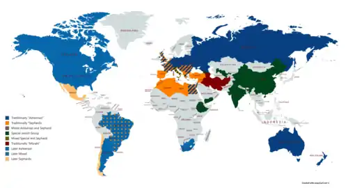 Jewish ethnic divisions refer to many distinctive communities within the world's ethnically Jewish population. Although considered a self-identifying ethnicity, there are distinct ethnic subdivisions among Jews, most of which are primarily the result of geographic branching from an originating Israelite population, mixing with local communities, and subsequent independent evolutions.[1][2]