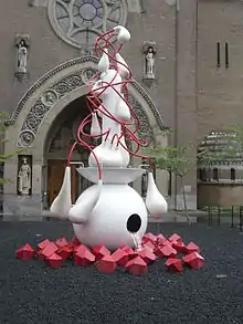 In the square in front of the church is a sculpture by Ruudt Peters. The inspiration for this came from a fountain, which can be seen in one of Bosch's most famous paintings, The Garden of Earthly Delights.
