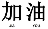 ![]() The Chinese characters (加油) for Jiayou along with the Mandarin pinyin (jiā yóu). | |||||||||||||||||||||