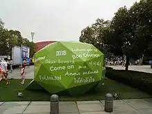 The phrase was also used to express international solidarity with Wuhan. Relief boxes of face masks sent to Wuhan because of a shortage by its sister-city of Oita in Japan were labelled with "Wuhan jiayou!"[10] On February 2, the UAE declared "We support Wuhan, and the Chinese communities around the world" and projected the phrase "Wuhan jiayou!" onto the Burj Khalifa in Dubai as a message of solidarity.[11]