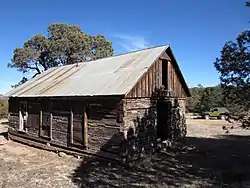 A one-room schoolhouse built of squared pine logs, it was in its time the most substantial building in the Jicarilla Mountains and was the pride of its community of homesteaders.[2]