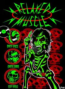 Connolly's love of punk rock led him also to design posters for appearances by The Buzzcocks,[7] The Damned,[8] The Misfits and Zombina and the Skeletones.[9] Swampy bluesmith Mr David Viner also received the poster treatment on a visit to Sheffield University Students Union.[10] This led to other commissions from Sheffield University Students Union including the consistent logo design for their annual 'Band Comp'.[11][12]