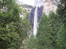 After camping the night at the foot of Bridalveil Fall, Bunnell credits himself for naming the valley after the Miwok word yosemite, which meant "those who kill." After campaigns up the rivers into the mountains and taking control of the Yosemite, the Awahnechee submitted to moving to a reservation, resulting in the end of the Mariposa War, and the disbandment of the Mariposa Battalion.[23][24]