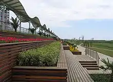 Jinshanwei town is home to Jinshan City Beach, one of the few beaches within the city boundaries of Shanghai.[5] The large beach with imported sand from Hainan is clean and boxed-in by a concrete wall. Locals prefer sitting in a tent over sunbathing. It offers facilities including restaurants, toilets, and for (100RMB for 90min) 5 beach volleyball and 3 beach soccer fields, trampoline, water balloon shooting, jetski