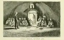 In 1870, Victor Guérin noted between seven hundred and fifty and eight hundred people in the village.[13] Also, "here Guérin observed among the houses a certain number of cut stones of apparent antiquity. Many of the houses are in a ruinous condition, others are completely destroyed. On the north-west side of the hill he found a great well, into which one descends by fifteen steps, now fallen to pieces. It gives a supply of water which never fails. The place is probably the old Gitta mentioned by Justin Martyr and Eusebius as the birthplace of Simon the Magician."[14]