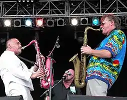 ![]() At the Melbourne International Music and Blues Festival, February 2004 Left to right: Joe Camilleri, John Power, Wilbur Wilde | |
