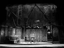 After his education and spending 13 months in Europe "absorbing the revolutionary changes occurring in traditional stage design", in 1923 he worked for the Theatre Guild in New York as an assistant stage manager and bit actor.[2] Mielziner's Broadway debut as a designer was in 1927 with The Guardsman, for which he designed the scenery and lighting.[7] His other Broadway credits include the original productions of Sweet and Low, Of Thee I Sing, Another Part of the Forest, Winterset, Oh, Captain!, Dodsworth, Strange Interlude, Carousel, South Pacific, Guys and Dolls, The King and I, A Streetcar Named Desire, Death of a Salesman, Cat on a Hot Tin Roof, Gypsy, and The Prime of Miss Jean Brodie,[8] as well as the film Picnic and the ballet Who Cares?. He won the Academy Award for best color art direction for his work on Picnic.[9]