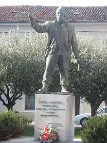 During the NOC meeting in the village of Korenići above Limska draga, Rakovac and his comrades were ambushed by the Germans, and everyone was forced to flee to their side; Rakovac was hit by a dum-dum bullet, but managed to escape to a nearby forest where he bled to death. He was found the next day, dead in the snow - at least this is the version of events that Rakovac's comrades-in-arms repeated for decades on official occasions.[4] Another version of the same event is that Rakovac was killed by elements of the partisan movement, who, in accordance with the orders of the KPJ in those days, systematically eliminated throughout Croatia the leaders of the People's Liberation Movement who were not too much "on the party line"[5] which was especially thought of Istrian cadres. After the end of the war, the new Yugoslav government dealt bloodily with the so-called Istrian "populists" (as with Mate Peteh, who was brutally murdered) and folk priests (e.g. Kazimir Paić). In this purge, all the Istrian partisan staff were removed, and all the most prominent partisan leaders of Istria were dismissed. Many were suspected and abused.[6] Due to all this, the identity of Rakovac's killers remains debated to this day.[7][8][9]
