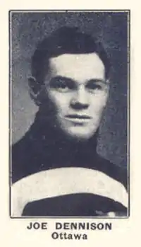Joseph Charles Dennison (February 2, 1888 – September 21, 1958) was a Canadian professional ice hockey player. He played with the Ottawa Senators of the National Hockey Association.[1] He appeared in 14 games for the Canadiens during the span of the 1911–12 and 1912–13 seasons. Later, he worked for the Bell Telephone Company, retiring in 1945 due to his health. He died at his home in Ottawa in 1958 of heart disease.[2]