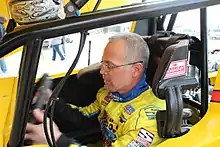 Saldana began racing at the local Indiana tracks close to his home in the early 1990s. He then moved up to the All Star Circuit of Champions, where he won 18 races in 1995. He ran occasionally with the World of Outlaws winning his first race with the series in 1995 and then began touring full-time with the series in 1996 capturing Rookie of the Year honors. He finished third in points in 2003 and 2006 and second in 2007.[1] He won 20 races (one of only six racers to do so in a season) in 2009 on his way to third in points for Kasey Kahne's race team.[2] He finished fourth in points in 2010 with 13 wins driving for the same team. He was contending for the 2011 title when he broke his arm, ribs and punctured a lung at the King's Royal race in July which caused him to be out for nine weeks.[3]