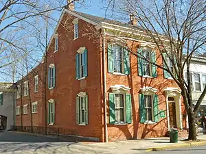 Johann Agust Sutter House is a historic home located at Lititz, Lancaster County, Pennsylvania. It was built in 1871, and is a 2+1⁄2-story, brick dwelling with a gable roof in a Late Victorian style. It measures 30 feet wide by 42 feet deep. In the 1930s, it was modified for commercial use. This included a rear brick addition and a concrete block addition on that. It was restored in the 1980s. It was the home of California pioneer Johann August Sutter (1803 – 1880). He moved to Lititz in 1871, and built this home.[2]