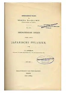 - 1883 : "Phytochemische Notizen ueber einige Japanische Pflanzen"