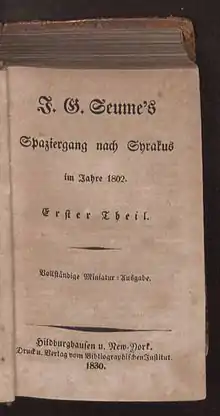 This article incorporates text from a publication now in the public domain: Chisholm, Hugh, ed. (1911). "Seume, Johann Gottfried". Encyclopædia Britannica. Vol. 24 (11th ed.). Cambridge University Press. p. 707.