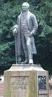 The Lörracher Pädagogium was renamed the Hebel-Gymnasium in 1926.[32] Several Gymnasien in Pforzheim and Schwetzingen were named after him. Basic schools, in Essen, Berlin and especially Südbaden bear his name, as do numerous German streets. Monuments to Hebel are found in the Karlsruhe Palace, in Basel, Hausen and in the Hebelpark Lörrach. The Hebelbund Lörrach, Müllheim and the Basler Hebelstiftung are dedicated to his life and work.