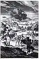 Although he appears to have painted other types of work than portraits, the only works other than portraits known to survive are his eight (out of a total of twelve plates prefacing each book of the poem) engraved book illustrations for the fourth edition, the first to be illustrated, of Paradise Lost by John Milton, published in London by Jacob Tonson in 1688. Though they have been described, perhaps rather unfairly, as "stiff and archaic", these follow Milton's text carefully, unlike those of the artists used for the other prints, and usually include several different episodes in each illustration. Appropriately, Medina drew on traditional Biblical iconography, carefully and imaginatively adapting it to fit Milton's text. Medina's designs preface Books 3 and 5 to 11; the plates were engraved from his designs by a specialist, Michael Burghers (also Burgese or Burgess), a Flemish engraver working in Oxford, who signed all but one plate as the engraver.[9] They were still being used, in rather worn-out condition, for the sixth edition of 1695.[10]