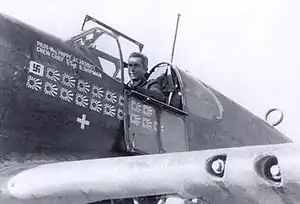 Upon his arrival in the CBI Theater, Herbst acquired the nickname "Pappy" because of his graying hair, his having a son in school, and his much greater age (34) relative to the other pilots.[2] His ground crew painted a small swastika on his personal fighter aircraft in China, acknowledging his stated German kill though it was not verified.[4] He named his aircraft "Tommy's Dad" in honor of his son. Herbst initially served with the 5th Fighter Group (provisional) without scoring any aerial victories but was transferred to the 76th Fighter Squadron on May 30, 1944,[9] serving as the 23d FG Squadron Operations Officer.[6] While flying a P-51B Mustang gathering weather data north of Kiatow on June 17, 1944, Herbst shot down a lone Nakajima Ki-43 fighter to make his first USAAF kill.[9]