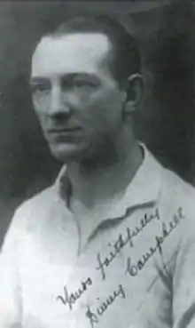 At the end of the 1912 season he moved to England, where he enjoyed 9 very successful seasons - scoring 136 tries. In 1921 Campbell returned to Australia, where he linked with his former club, Eastern Suburbs, for one final season. Campbell later went on to become a talent scout for the Eastern suburbs. Campbell made his début for Leeds against Keighley at Headingley Rugby Stadium, Leeds on Saturday 14 September 1912.[3] Campbell played left-centre, i.e. number 4, in Leeds' 2–35 defeat by Huddersfield in the Championship Final during the 1914–15 season.[4]