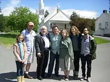 Clark and Redgrave lived in Barnes, London and Howth, Dublin for a number of years before returning to the United States where he was a citizen. They lived for 22 years at Colina Drive in Topanga, California. They had three children together: Benjamin (b. 1968), Kelly (b. 1970), and Annabel (b. 1981). At one point, Redgrave had legally hyphenated her name to Redgrave-Clark.[26] Redgrave filed for divorce in 1999 after Clark revealed to Redgrave that he had fathered a child, Zachary, in 1991 with his personal assistant, Nicolette Hannah, who later married (and subsequently divorced) their son Benjamin.[1][8][27][28] The divorce proceedings were front-page news for months. Clark defended himself in Family Court proceedings before Judge Arnold Gold, contested the tabloid's version of events, though he had been extensively quoted in the same tabloids, and wrote about his views on court proceedings at his website.[29][30] Redgrave's one-woman play Nightingale (2009), which explored the life of her maternal grandmother, also included reflections about her marriage to Clark.[31][32]