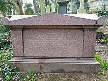 He died in London on 12 October 1863 and was buried in Highgate Cemetery;[5] as he left no son, his peerage became extinct. Lady Lyndhurst died in London 22 December 1901, aged 94.[4]
