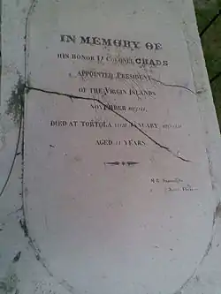 The gravestone of John Chads is in the churchyard of St George's, the main Episcopal church in Road Town.