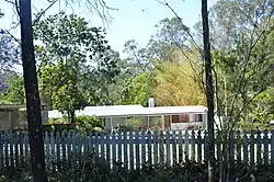 The first, considered Dalton's ‘Anonymous Houses’, encompassed the design of a series of modest homes in Brisbane's (then) semi-rural Western suburbs between 1956 and 1961. These ‘anonymous’ houses were distinguished by their ‘unobtrusive simplicity’,[12] in lieu of any strong ‘stylistic’ presence.[13] These early houses designed by Dalton retain visual similarities with the architects under whom John Dalton had worked, most notably, the renowned practice of Eddie Hayes & Cam Scott. This was most evident in the specification of construction and finishes in these early houses. Whilst relatively non-specific, the form of these houses often emphasised the horizontality of the building, often with continuous runs of windows/glazed sliding walls, and expressed soffit beams and lines of eaves.[14]