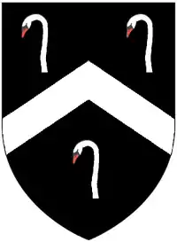 He married on 10 January 1585 to Agnes Downe (d.1639), a daughter of Henry Downe of Barnstaple.[1] They had 5 sons, of whom only one, Richard Delbridge, survived his father, and 3 daughters, of whom only one survived her father.[1] His son Richard married firstly to Elizabeth Chichester (d.1628),[1] to whom he erected a mural monument in St Peter's Church in Barnstaple, a daughter of John II Chichester (d.1608) of Hall, Bishop's Tawton, in which latter parish John Delbridge owned a country estate.[1] The Chichesters of Hall were a junior but nevertheless wealthy branch of the leading North Devon gentry family of Chichester of Raleigh. The Inscription on the monument is as follows: "To the memorie of Elizabeth the wife of Richard Delbridge of Barnstaple, merchant, & daughter to the worthy John Chichester Esq.r of Hall, together with her child of which she died in childbirth 18 December 1628" She is depicted kneeling at a prie dieu with a baby in swaddling clothes on the ground in front of her. Above her is a lozenge showing the arms of Chichester (Chequy or and gules a chief vair a crescent for difference). On top of the monument is an escutcheon with the arms of Delbridge (Sable, a chevron argent between three swan's heads and necks couped proper) impaling Chichester. On Richard's marriage his father settled upon him his lands in Bermuda as the following summary of a deed held by the Royal Institution of Cornwall records:[5] "Covenant:(i) John Delbridge of Barnstaple in Devon, merchant (ii) Richard Delbridge his son and heir; to convey all lands of (i) in the Bermadoes alias Somer Islands in Somersett Tribe and Harryngton Tribe upon marriage of (ii)". Richard Delbridge married secondly in 1631 Elizabeth Speccot, daughter of Thomas Speccot of Speccot, in the parish of Merton, Devon[6] although the pedigree recorded on the 1821 petition of Frances Delbridge in the North Devon Record Office states he married secondly Mary Bassett. His descendants failed to consolidate their place amongst the Devon gentry,[1] and none served again as MP, although the office of Mayor of Barnstaple was held by Nicholas Delbridge in 1619 and by Joseph Delbridge in 1658.[4] Richard's son was Richard II Delbridge (d.1729) who married in 1684 Mary Reed. Their son was Richard III Delbridge (1686–1745), yeoman and freeholder, buried at "Wonworthy" (Wembworthy in North Tawton hundred), who married at "Wonworthy" to Jane Holmes (1720–1804). They had children as follows: Richard IV, Mary, Jane, Elizabeth, Anne and Frances (b.1759), of "Kinsington Mall", whose 1821 petition including a diagram of the above pedigree exists at North Devon Record Office.