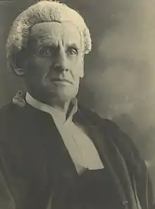 Having matriculated at the University of Glasgow, where he won an entrance scholarship, he left that university to join his father and other members of the family to emigrate to New Zealand. They landed in Otago in 1862 and Denniston Sr. took up a run Oteramika in Southland. His father died at his house at Fendalton, Christchurch, in 1897. Denniston Jr saw service in various capacities, including the civil service and that of the Bank of New South Wales, and then became a law student with William Downie Stewart. He was admitted to the New Zealand Bar at Dunedin by Justice Chapman on 4 August 1874. For some months he practised at Wanganui in partnership with George Hutchison, afterwards a prominent member of the House of Representatives. In 1875, he became associated with Downie Stewart in Dunedin and the firm was subsequently joined by Allan Holmes, son of the Hon. Mathew Holmes, MLC, under the style of Stewart, Holmes and Denniston, and acquired an extensive practice in Otago. Court work was undertaken by Denniston, whose name was connected with most of the important civil and criminal cases in the province. In 1889, he was elevated to the bench on the death of Justice Alexander James Johnston and was sworn in by His Honour Sir James Prendergast, Chief Justice of New Zealand, in February 1889.[1] Denniston was knighted on 21 February 1917[4] upon his retirement from the bench.[5]