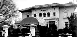 John H. Adams House, also known as Davis Funeral Home, is a historic home located at High Point, Guilford County, North Carolina. It was built in 1918, and is a two-story, five bay, stuccoed frame structure in the Italian Renaissance style. It has a low pitched, deck-hipped roof with terra cotta, widely overhanging boxed eaves, and a three-bay recessed upper porch or loggia with semi-circular arches.[2]