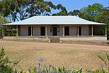 The Experiment Farm Cottage is located at 9 Ruse Street, Harris Park, NSW 2150, county of Cumberland.[12] Harris was granted 100 acres in Parramatta and purchased an additional farm from James Ruse, a freed convict in 1798 and this land became the home of the Experiment Farm Cottage. The Experiment Farm Cottage was built by Harris in c1835 to mimic an Indian style Bungalow that shows a new settler such as himself could start a life and family with minimal assistance.[13] The Experiment Farm Cottage remained in the Harris family until 1923 and was then subdivided and sold.[14]