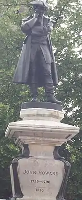 Howard became the first civilian to be honoured with a statue in St. Paul's Cathedral, London.[9] A statue was also erected in Bedford, and a further one in a John Haviland-designed monument in Kherson. His bust features in the architecture of a number of Victorian prisons across the UK, such as at Shrewsbury. He was elected a Foreign Honorary Member of the American Academy of Arts and Sciences in 1790.[10]