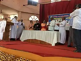 The death anniversary and commemoration of Kuzhinapurath was celebrated on 30 January 2010. Thomas Kuzhinapurath and seven other priests from Kuzhinapurath family concelebrated Holy Qurbono at Bethany Ashram, Nalanchira, Trivandrum, where Kuzhinapurath is buried, followed by a commemoration meeting presided by Moran Mor Baselios Cleemis. Mor Cleemis released the book Preshita Deepam, the biography of Kuzhinapurath, written by Peter C. Abraham. Baselios Cleemis said Fr. John was truly a refuge to the poor and the destitute.[4] The second edition of the biography of Kuzhinapurath, "Preshita Deepam" was released at the 5th quinquennial assembly of the Great Pakalomattom family at Kuravilangadu on December 19, 2015. Cardinal Baselios Cleemis, the President of Catholic Bishops'Conference of India released book by giving the first copy to Alexander Jacob, IPS, the former Director General of Police, Kerala, India.[5] Every year pilgrims from Vettinadu, Vembayam and Chiramukku, the mission stations he served for several years come and celebrate Holy Qurbono at Bethany Ashram, Nalanchira, where he was buried and pray at his tomb under the leadership of their parish priest on Jan. 28, his death anniversary. His family members will gather together and commemorate him on second Saturday of January every year at his home parish at Cheekkanal, Omallur, Pathanamthitta[6] Kathikan Basilica John staged the story of John Kuzhinapurath in the form of a Kadhaprasangam at Omallur on January 13, 2018.[7]