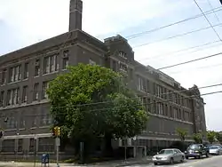 John M. Patterson School is a historic elementary school located in the Penrose neighborhood of Philadelphia, Pennsylvania. It is part of the School District of Philadelphia The building was designed by Irwin T. Catharine and built in 1920–1921. It is a three-story, eight bay by three bay, brick building on a raised stone basement in the Colonial Revival-style. It features a large center entrance, stone coping, and a parapet.[2]