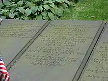 Scott died in New York City on September 14, 1784, and his body was interred at the north entrance of Trinity Church, New York.[1] His inscribed slab is visible from the corner of Wall Street and Broadway. An equestrian statue is erected in his honor in Upper Manhattan.