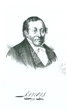 John Moss (1771, London, England[1] - 5 April 1847,[1] Philadelphia, Pennsylvania) was a Jewish merchant, shipping magnate, and civic leader. He emigrated to the United States as a glass engraver from London.[2]: 184, 236 [3][4][5] Moss soon turned to other ventures after glass engraving proved insufficient to sustain a decent wage.[2]: 186 He opened a dry goods store in 1807 and soon became a major importer, eventually owning a small merchant fleet.[2]: 186 In 1823, he turned control of the business to his brothers and turned his attention to various civic enterprises. He was a founding member of the Musical Fund Society. He served as a steward of the Society of Sons of St. George a mutual-aid society for former Englishmen like himself and was a benefactor of the Philadelphia Orphan Asylum.[4] In 1825, he acted as judge of engraved glass during the Franklin Institute's second exposition of American craftsmanship.[2]: 349, 489 .In 1828 he entered into politics by being elected to the Philadelphia City Council's lower house, the Common Council, on the Jacksonian Democratic Party ticket. It was in this capacity that he played a role in the establishment of the Wills Eye Hospital.[2]: 328 Later in life he became a supporter of Isaac Leeser's American Jewish Publication Society. In 1840, in the wake of the Damascus Affair Moss led a protest committee from the city of Philadelphia.[4]