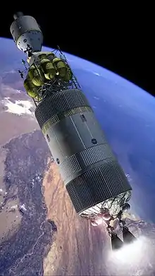 Apollo 17 (December 1972), was the last of the Apollo missions. It marks the last moonwalk and also the last crewed mission beyond low Earth orbit.[9]