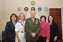 In June 2008, Secretary of Defense Robert Gates announced Allen's nomination for promotion to the rank of lieutenant general.[10] He served as the deputy commander of the U.S. Central Command from July 15, 2008, until July 18, 2011, at MacDill Air Force Base.[11][12] On June 30, 2010, Allen temporarily commanded Central Command after General David Petraeus left to assume command of the International Security Assistance Force in Afghanistan.[13] He served as acting commander until General James Mattis took command on August 11.[14][15][16] Allen was promoted to general by Chairman of the Joint Chiefs of Staff, Admiral Mike Mullen prior to his assumption of command of ISAF, and U.S. Forces Afghanistan (USFOR-A) on July 18, 2011.[17]